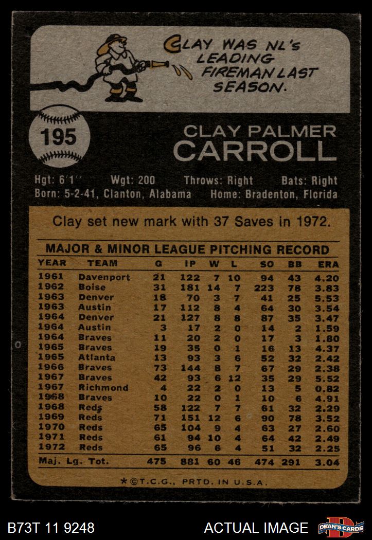 1973 Topps #195 Clay Carroll 4 - VG/EX