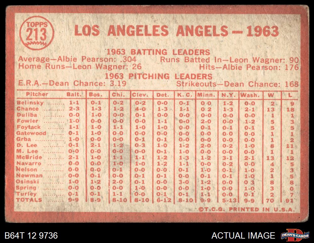 1964 Topps #213 Angels Team 1 - POOR