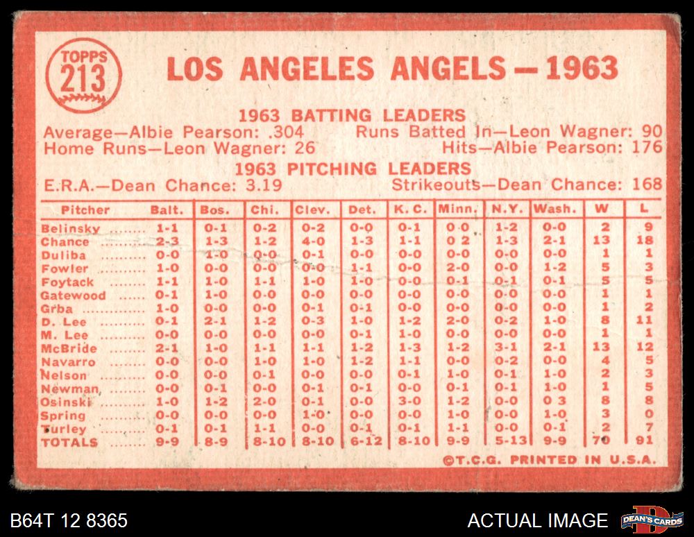 1964 Topps #213 Angels Team 1.5 - FAIR