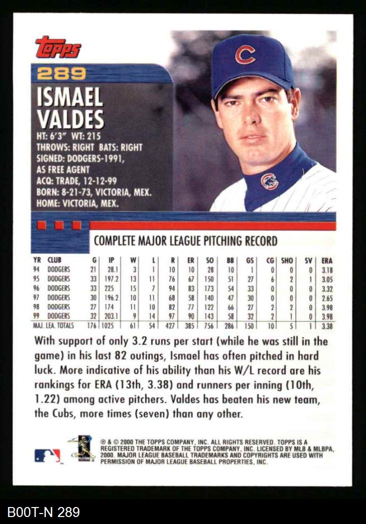 2000 Topps #289 Ismael Valdes 8 - NM/MT