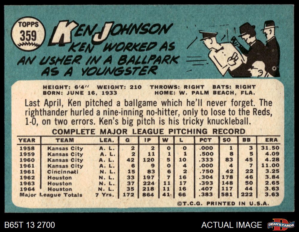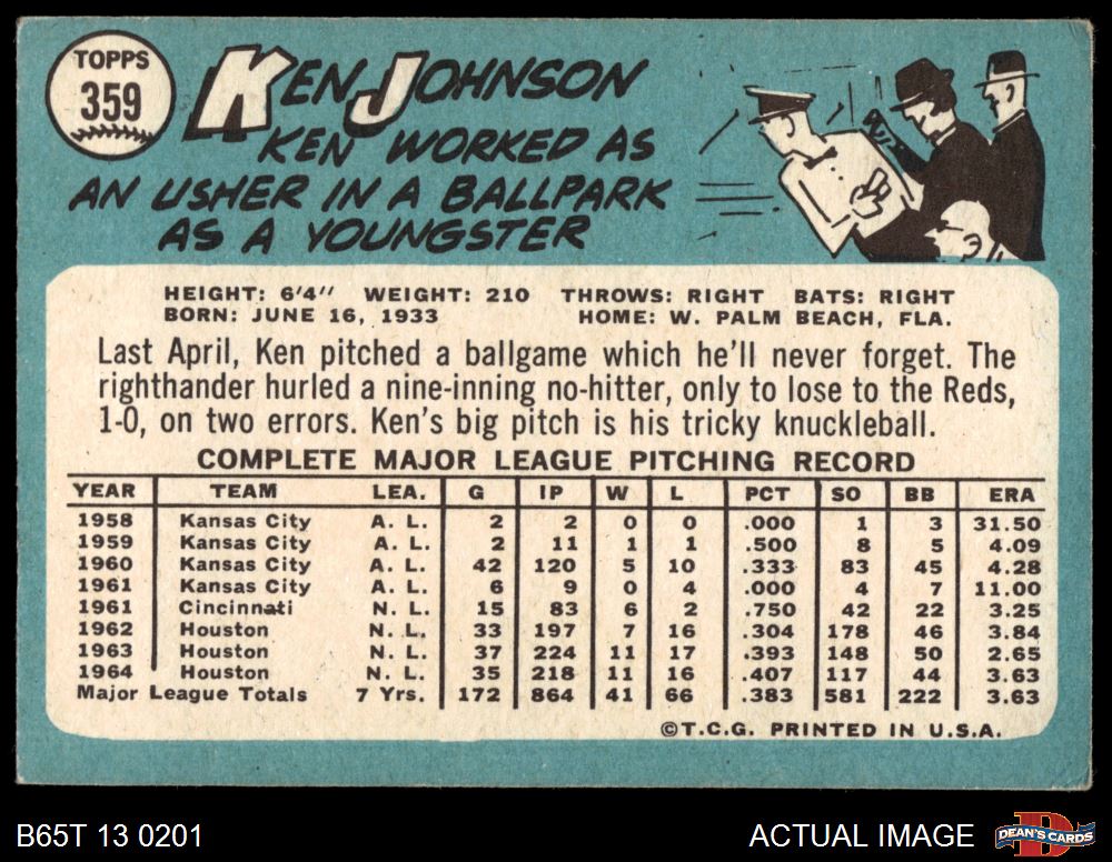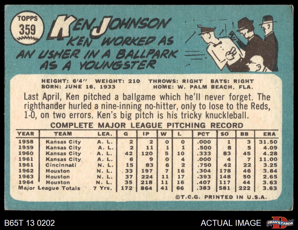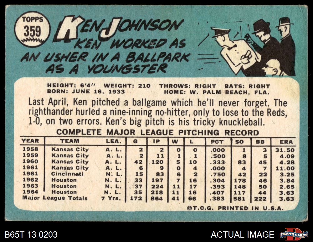 1965 Topps #359 Ken Johnson