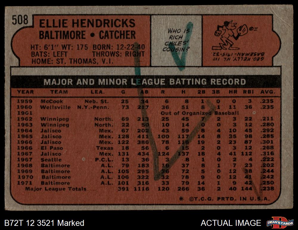 1972 Topps #508 Ellie Hendricks 1 - POOR