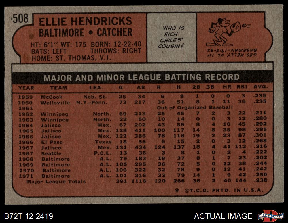1972 Topps #508 Ellie Hendricks 6 - EX/MT