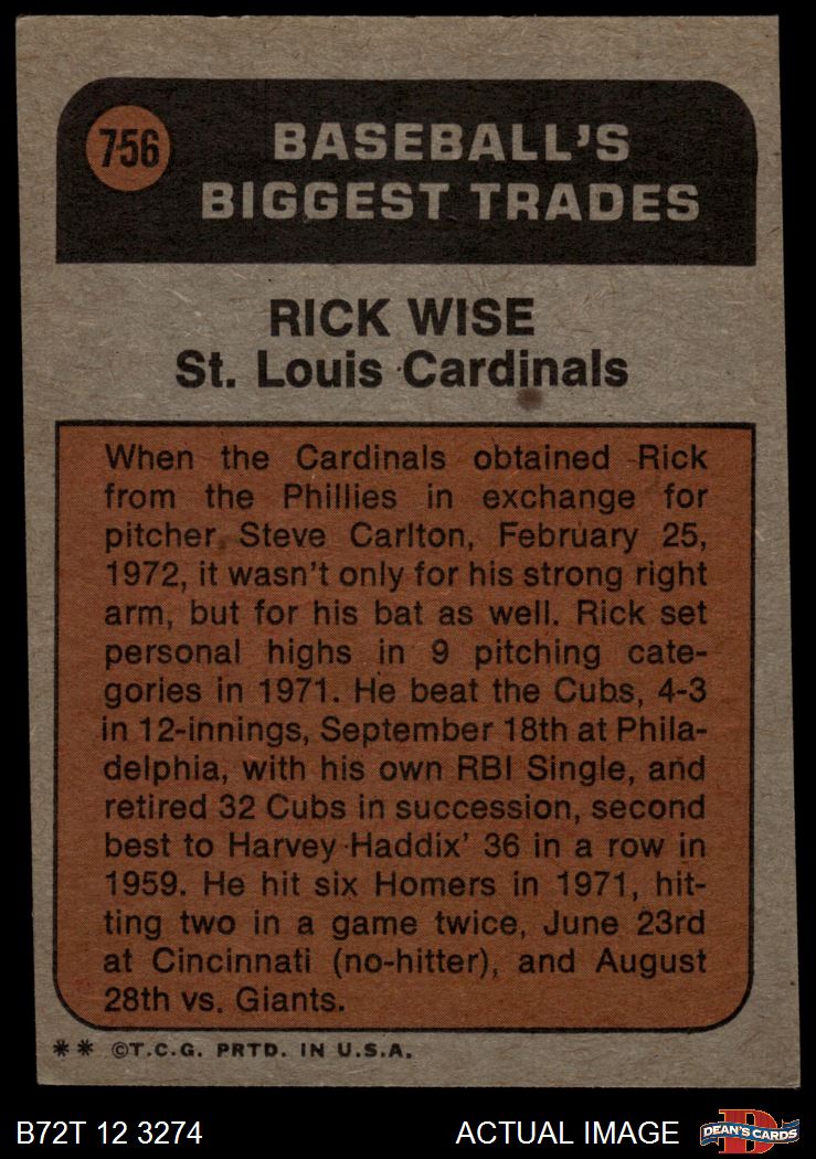 1972 Topps #756 - Rick Wise Traded 2 - GOOD