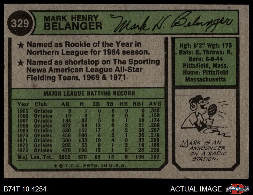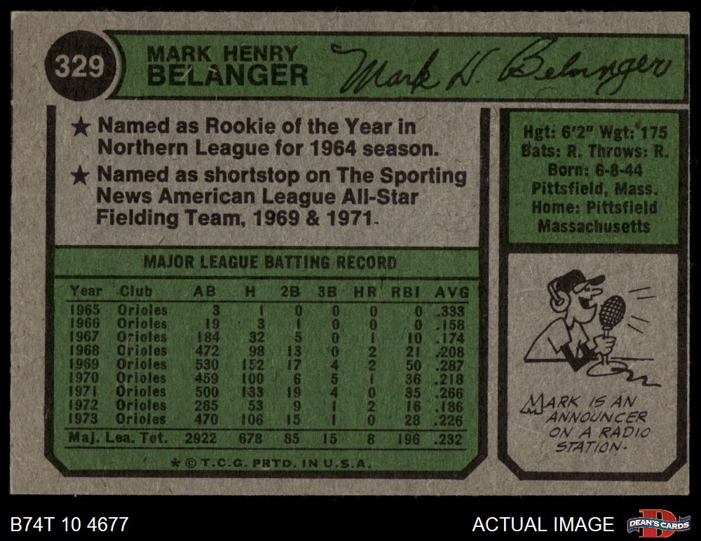 1974 Topps #329 Mark Belanger 2 - GOOD