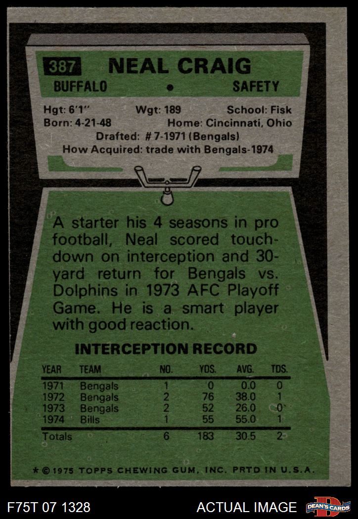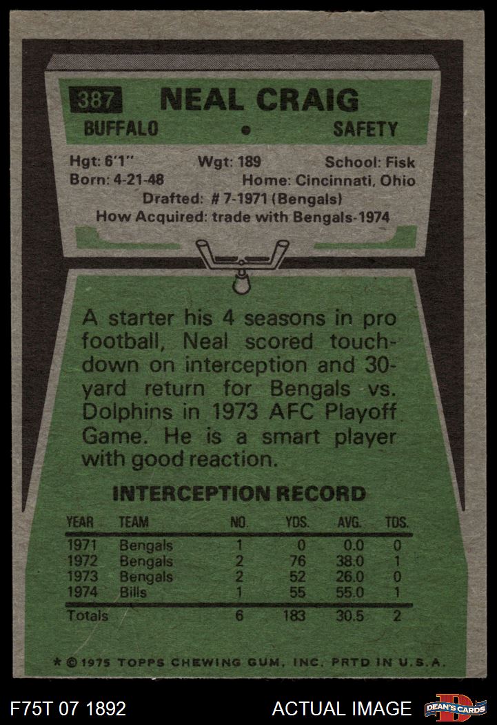 1975 Topps #387 Neal Craig