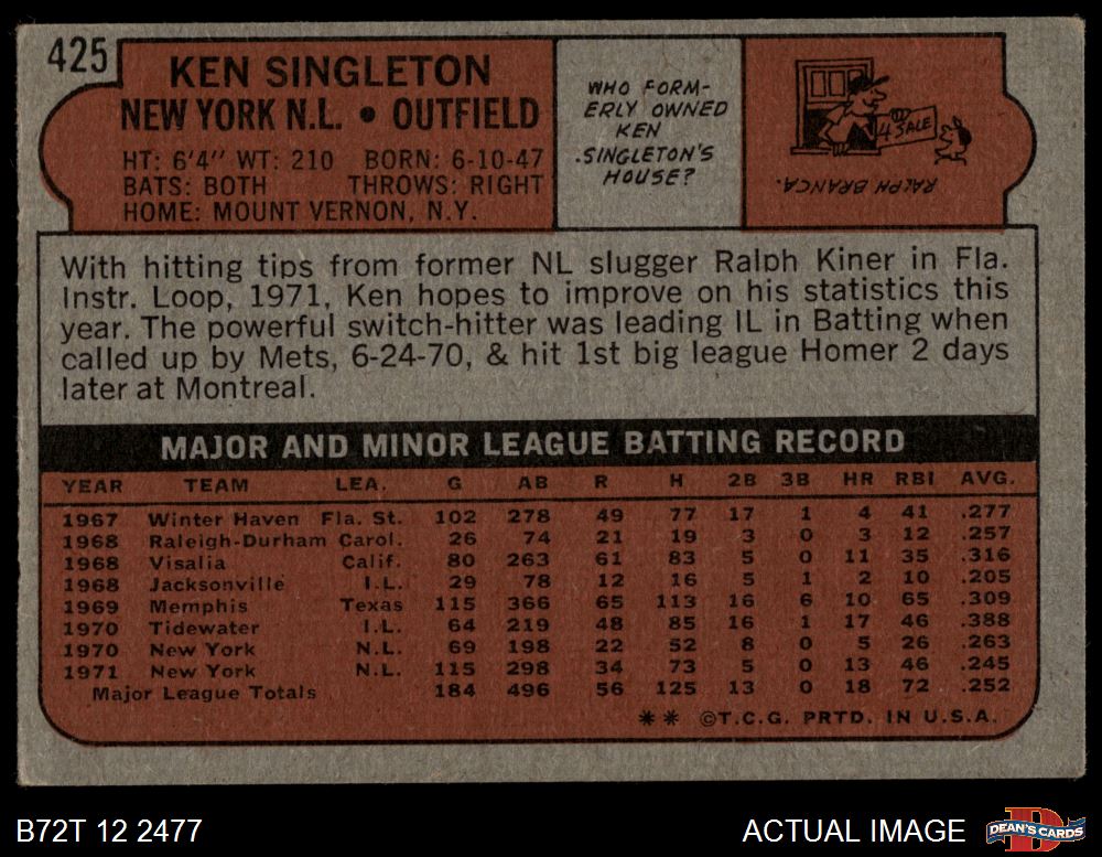 1972 Topps #425 Ken Singleton 2.5 - GD+