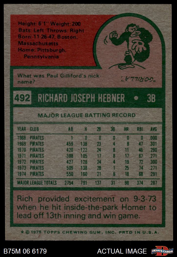 1975 Topps Mini #492 Richie Hebner 8 - NM/MT