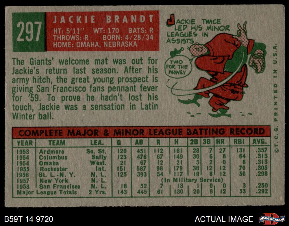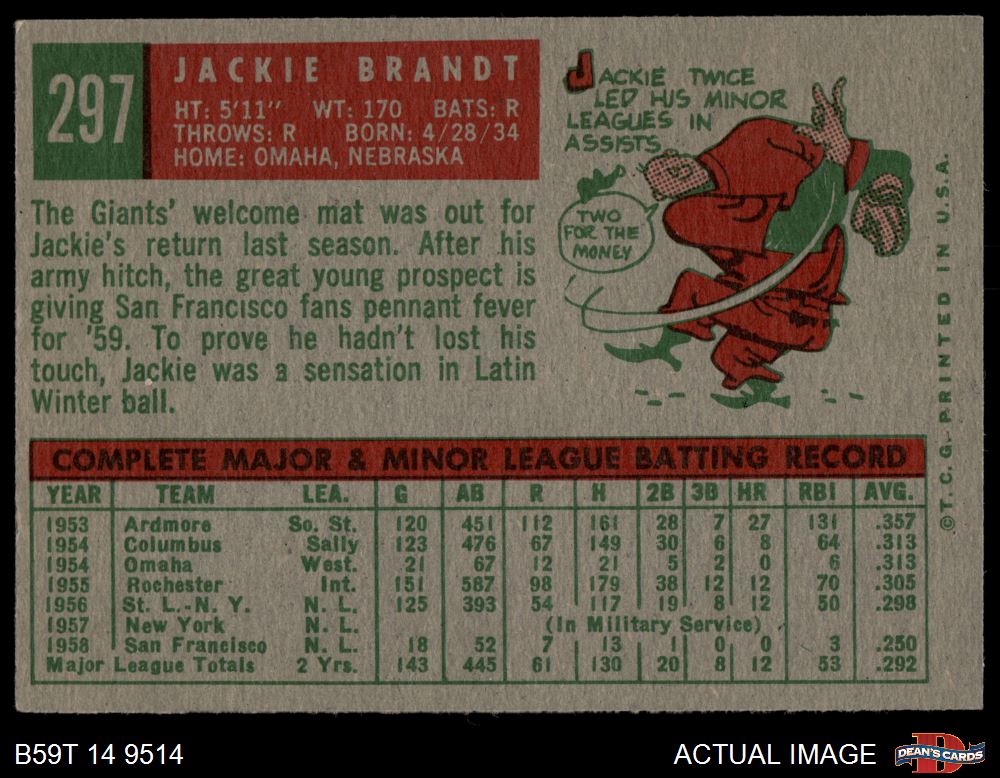 1959 Topps #297 Jackie Brandt 4.5 - VG/EX+