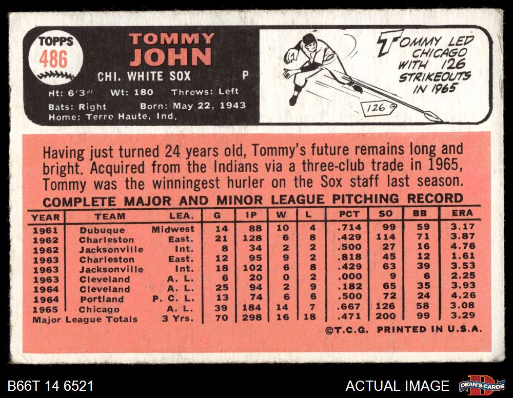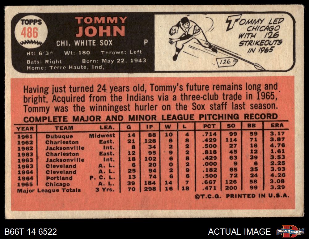 1966 Topps #486 Tommy John