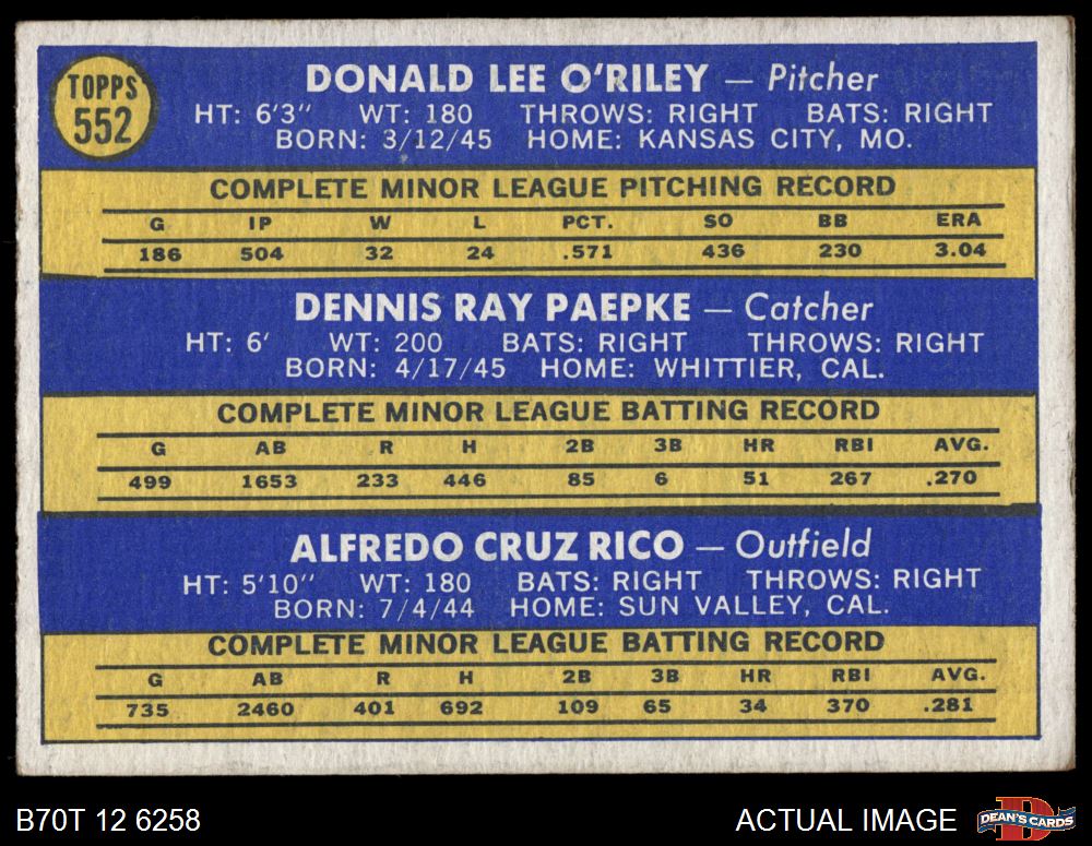 1970 Topps #552 - Don O'Riley / Dennis Paepke / Fred Rico Royals Rookies 4 - VG/EX