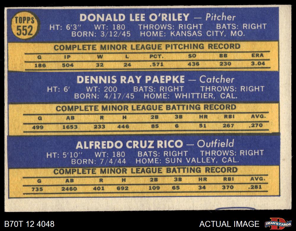 1970 Topps #552 - Don O'Riley / Dennis Paepke / Fred Rico Royals Rookies 6 - EX/MT