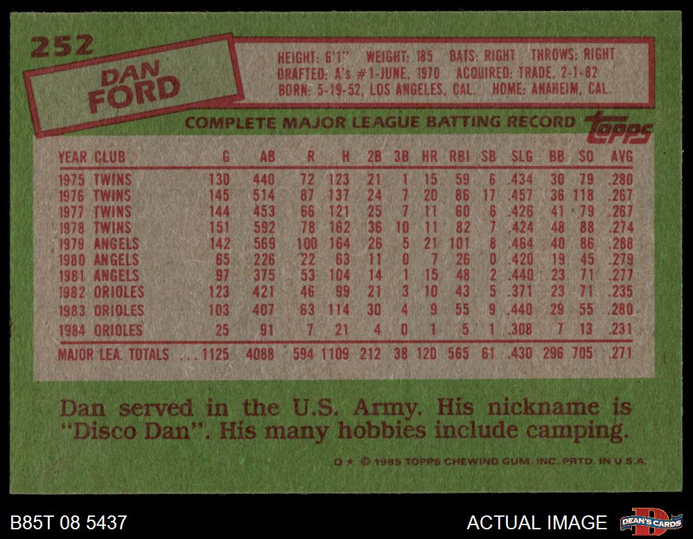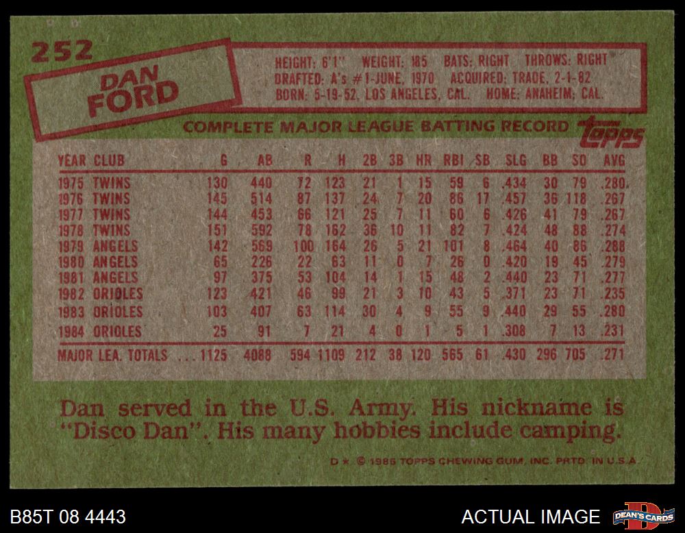 1985 Topps #252 Dan Ford