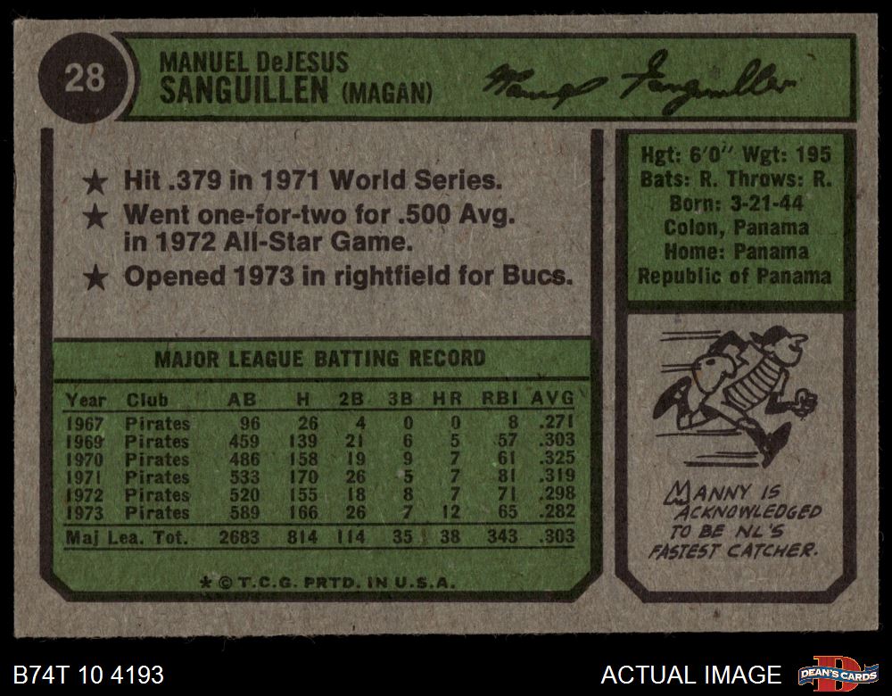 1974 Topps #28 Manny Sanguillen