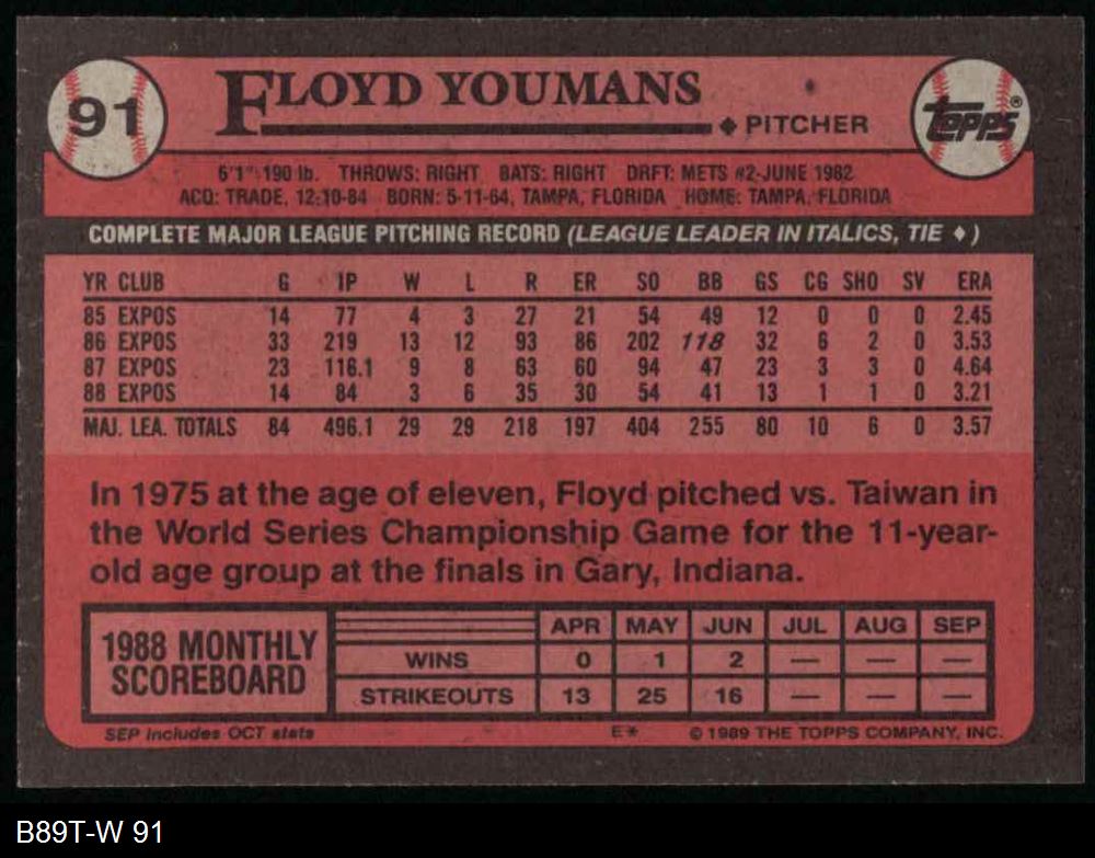 1989 Topps #91 Floyd Youmans
