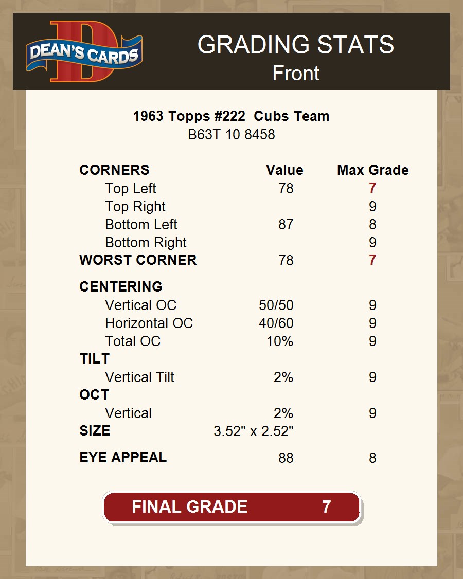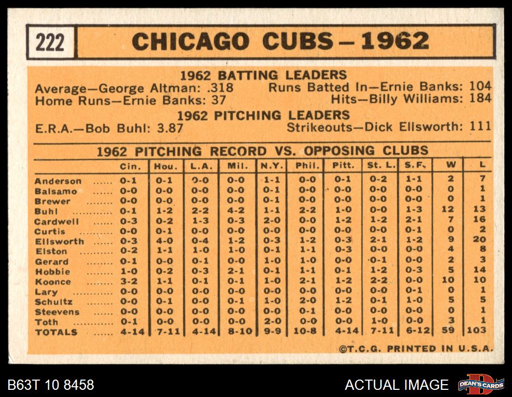 1963 Topps #222 Cubs Team