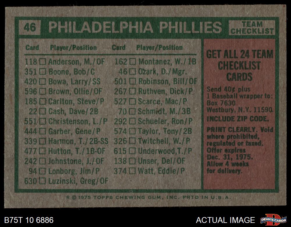 1975 Topps #46 - Danny Ozark Phillies Team Checklist 4.5 - VG/EX+