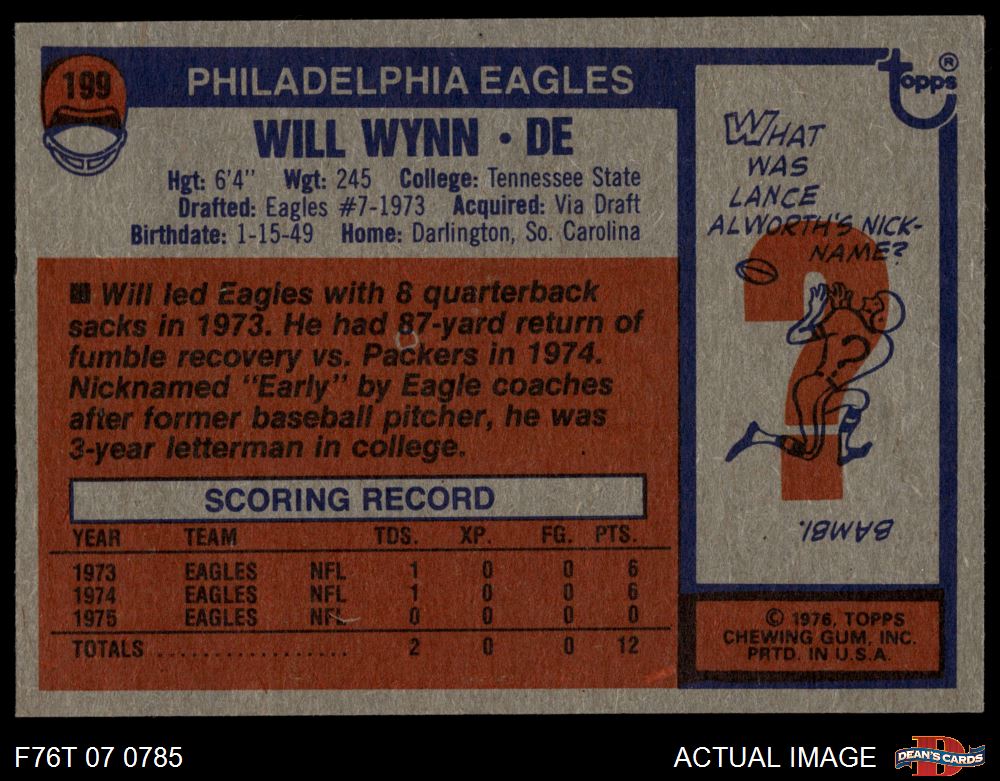 1976 Topps #199 Will Wynn 4 - VG/EX