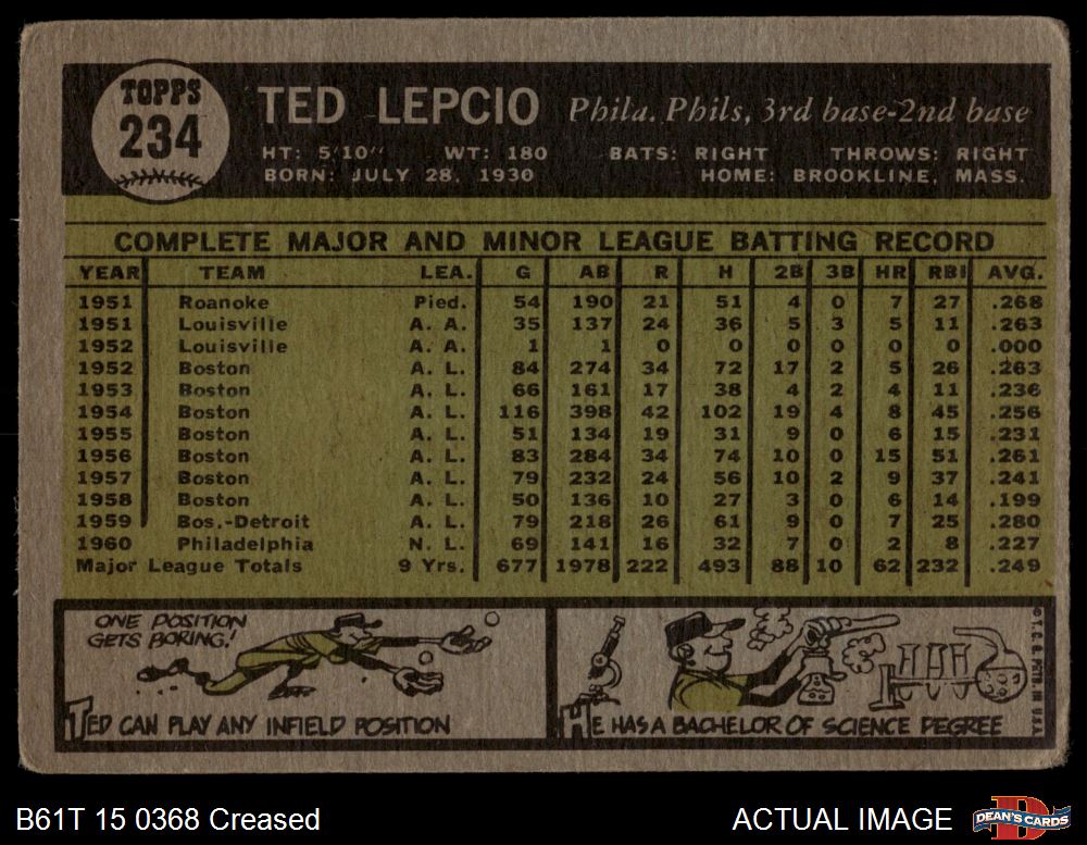 1961 Topps #234 Ted Lepcio 1 - POOR