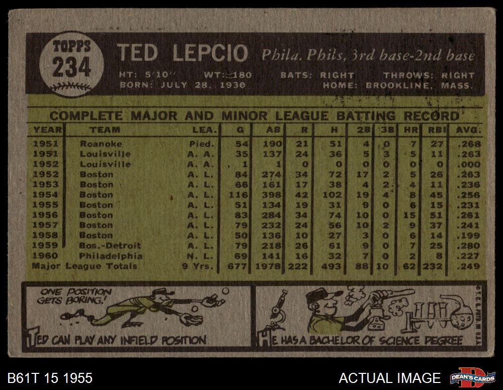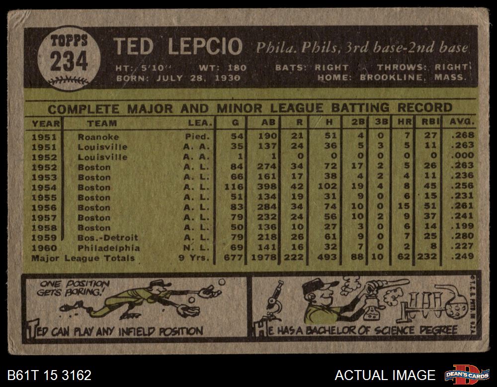 1961 Topps #234 Ted Lepcio 2 - GOOD