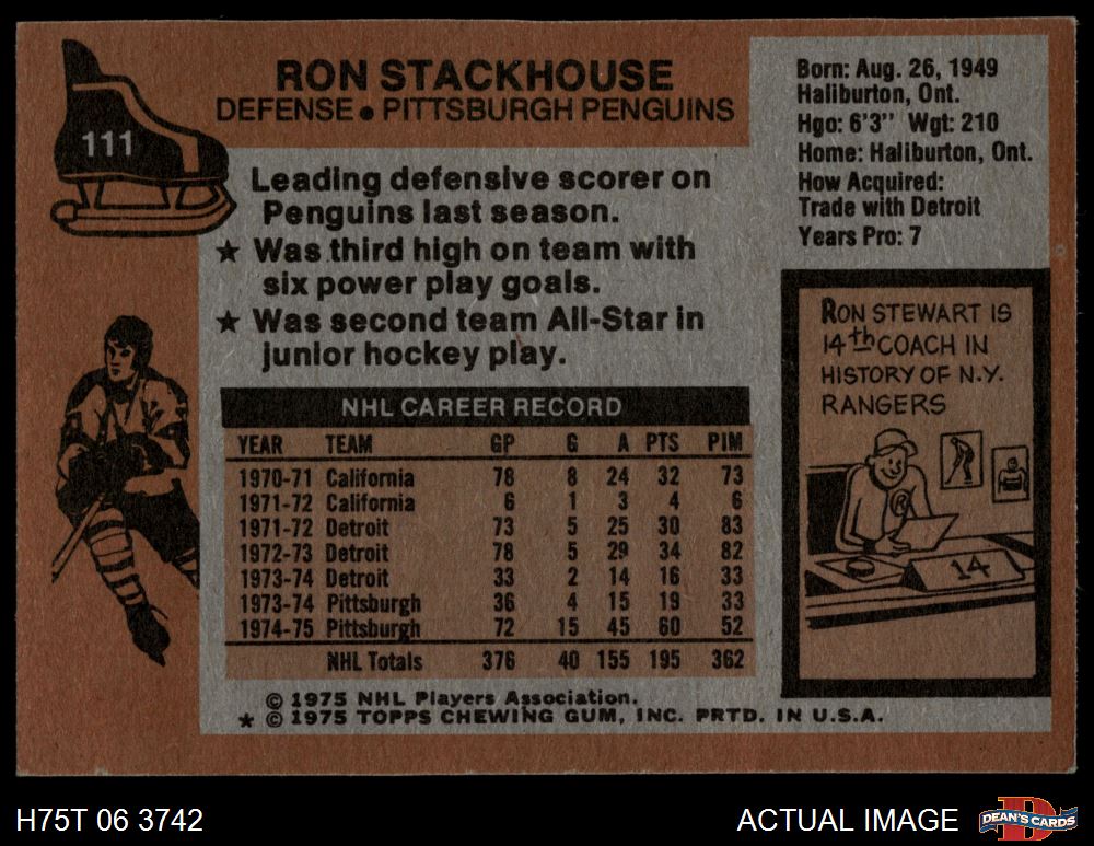 1975 Topps #111 Ron Stackhouse 6 - EX/MT