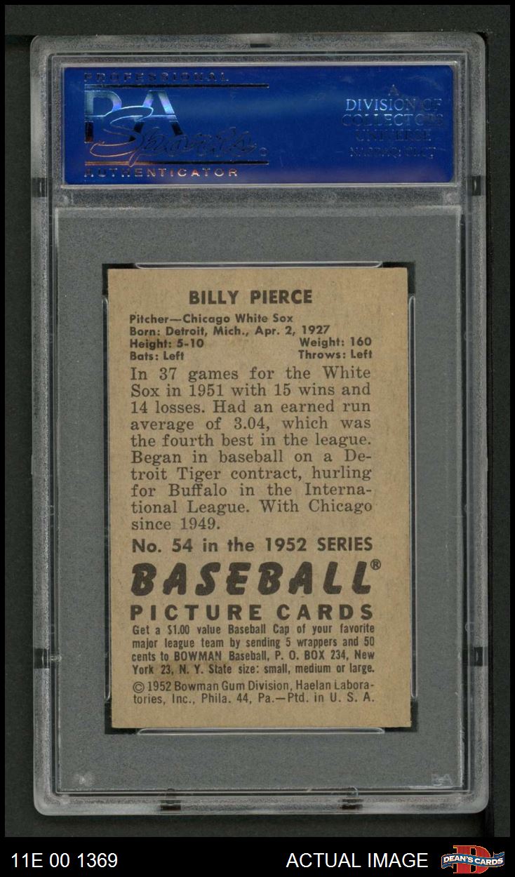 1952 Bowman #54 Bill Pierce PSA 6.5 - EX/MT+