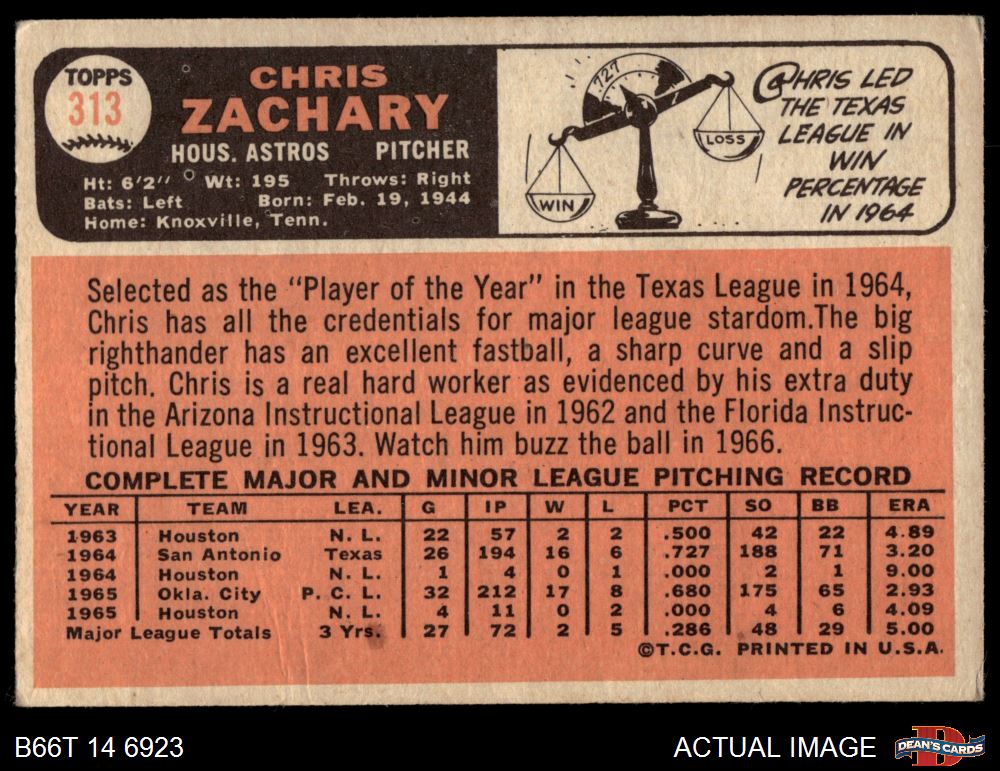 1966 Topps #313 Chris Zachary 2.5 - GD+