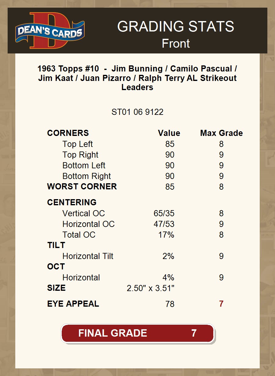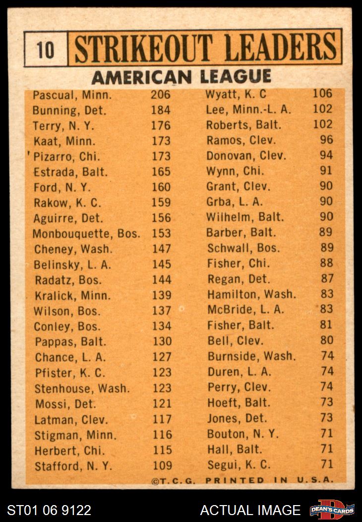 1963 Topps #10 - Jim Bunning / Camilo Pascual / Jim Kaat / Juan Pizarro / Ralph Terry AL Strikeout Leaders 7 - NM