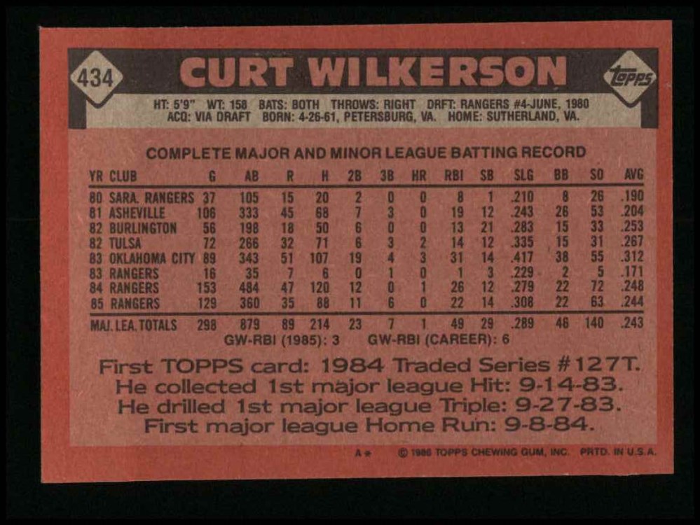 1986 Topps #434 Curt Wilkerson 8 - NM/MT