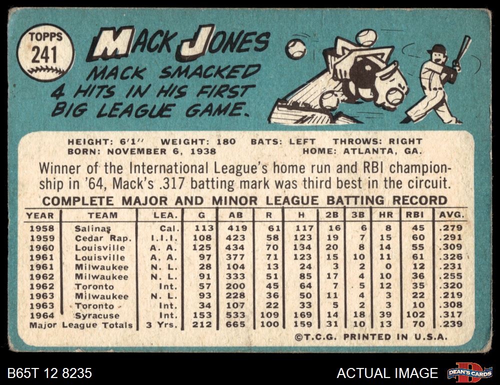 1965 Topps #241 Mack Jones 1.5 - FAIR