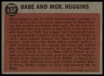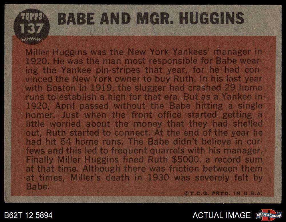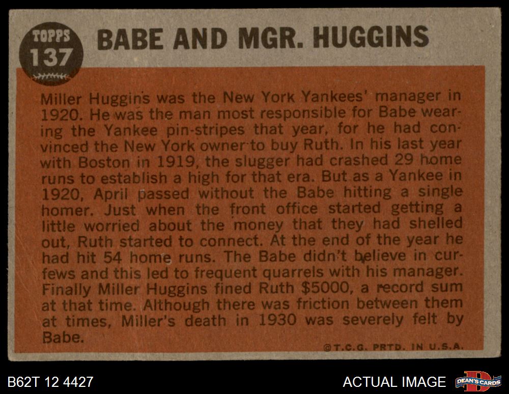 1962 Topps #137 NRM - Babe Ruth / Miller Huggins Babe and Mgr. Huggins 2 - GOOD