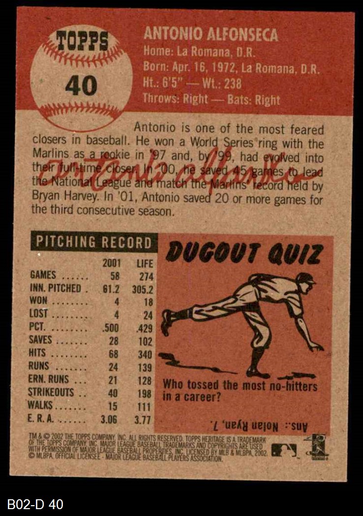 2002 Topps Heritage #40 Antonio Alfonseca 8 - NM/MT