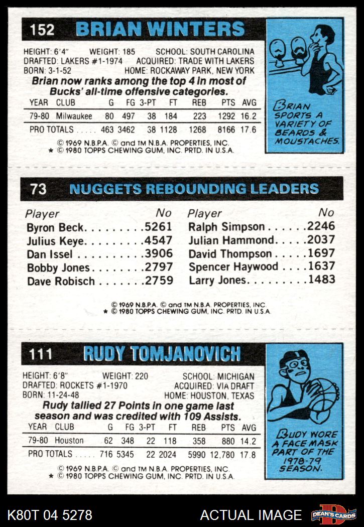 1980 Topps - Rudy Tomjanovich / Dan Issel / Brian Winters 111 / 73 / 152 6.5 - EX/MT+