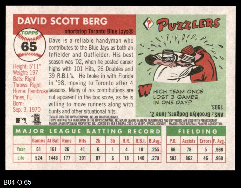 2004 Topps Heritage Baseball Cards (1,901 available)2004 Topps Heritage Blue Jays (64 available)