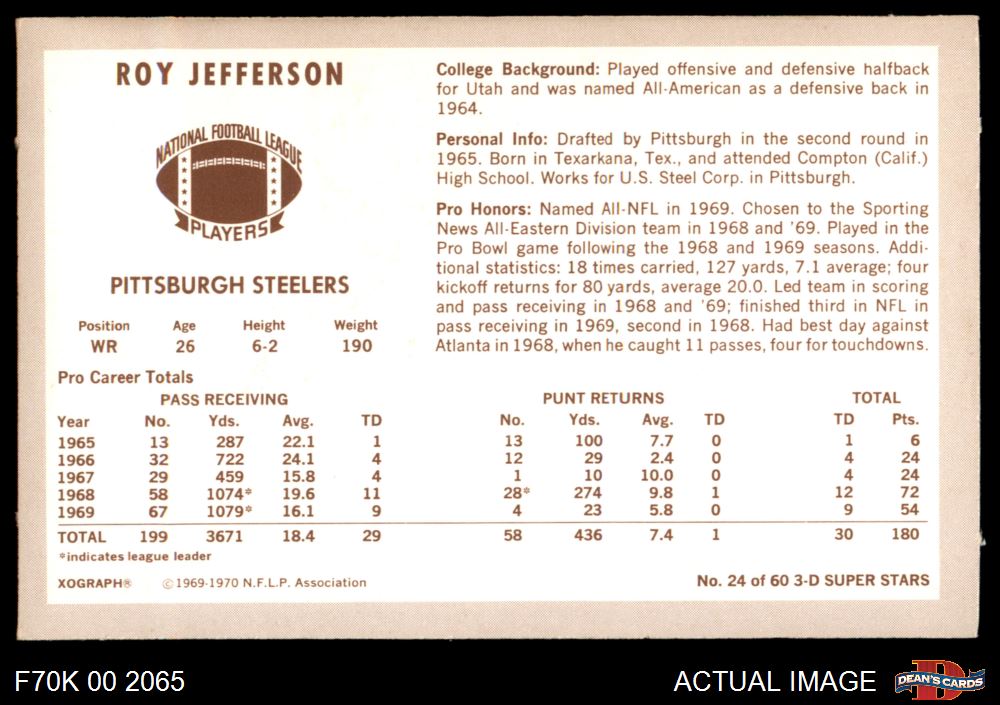 1970 Kellogg's #24 Roy Jefferson 8 - NM/MT
