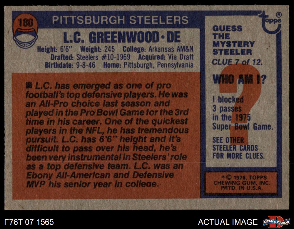 1976 Topps #180 L.C.Greenwood 1.5 - FAIR