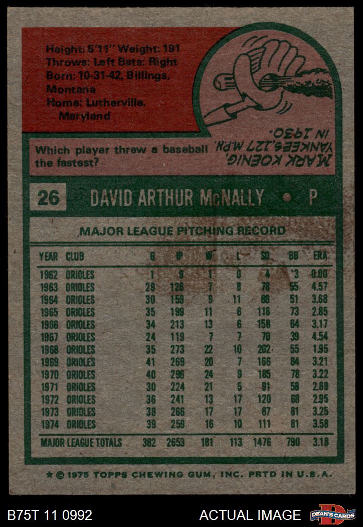 1975 Topps #26 Dave McNally 3 - VG