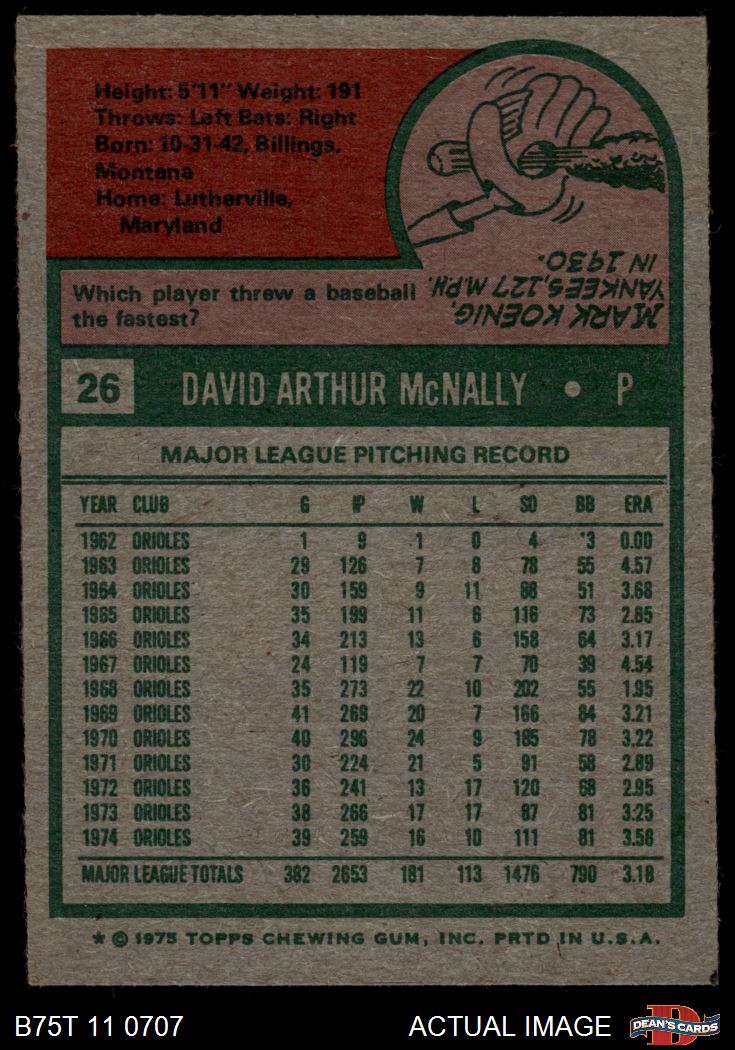 1975 Topps #26 Dave McNally 4 - VG/EX