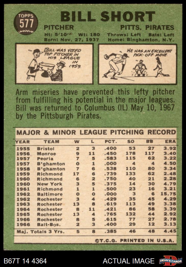 1967 Topps #577 Bill Short