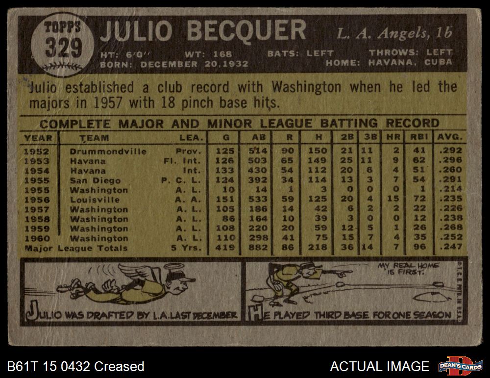 1961 Topps #329 Julio Becquer 1.5 - FAIR