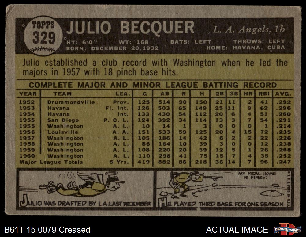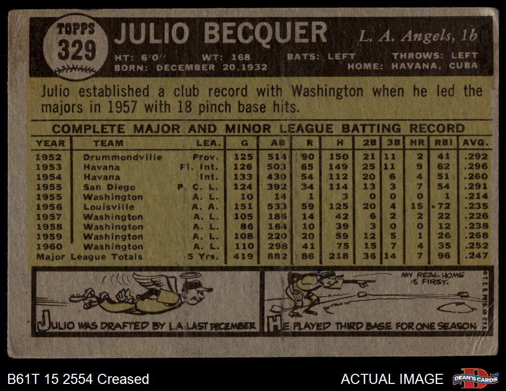 1961 Topps #329 Julio Becquer 2 - GOOD