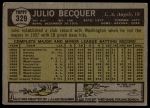 1961 Topps #329 Julio Becquer Front Thumbnail