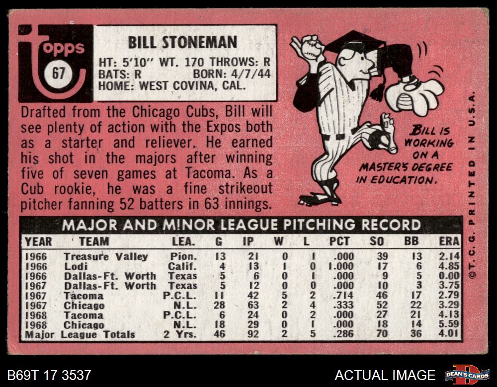 1969 Topps #67 Bill Stoneman 3 - VG