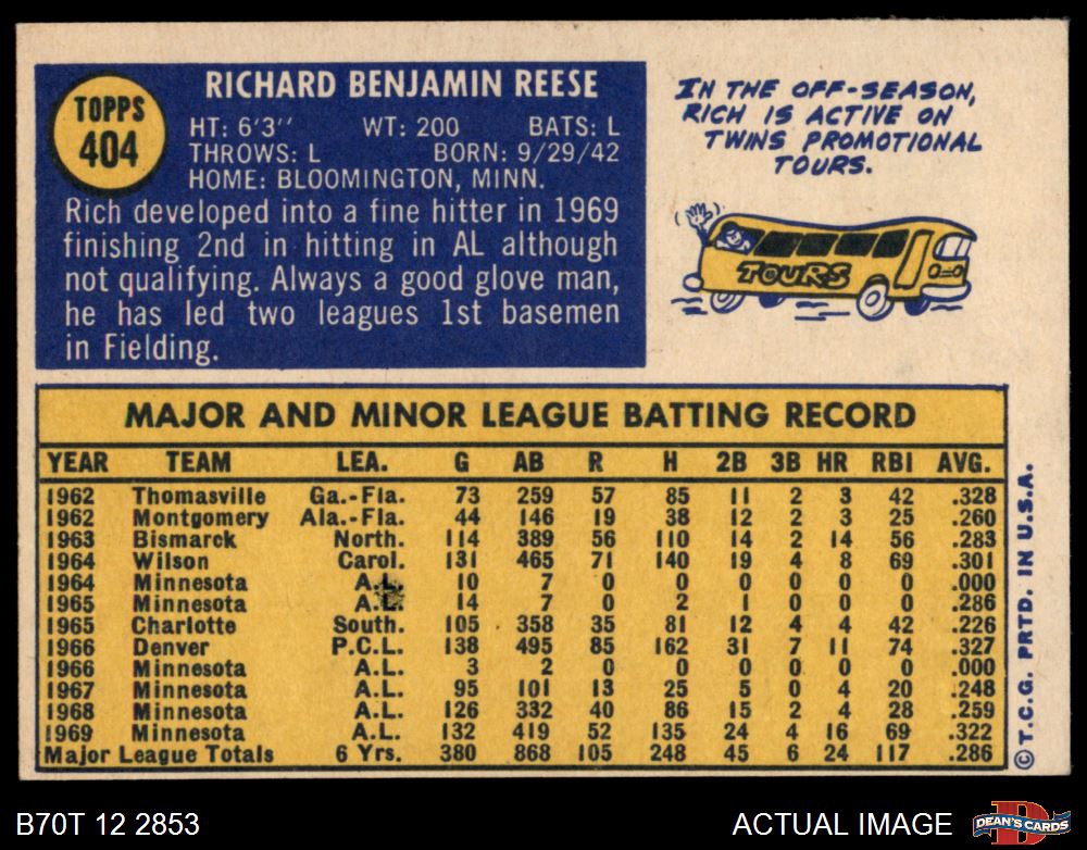 1970 Topps #404 Rich Reese 6 - EX/MT