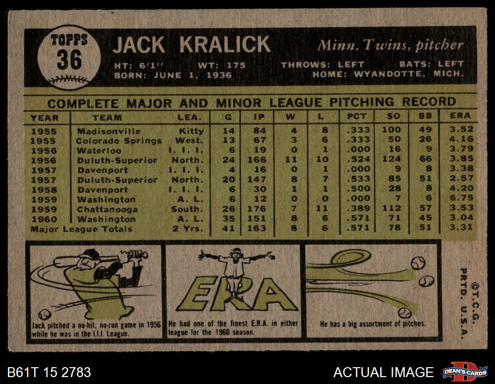 1961 Topps #36 Jack Kralick