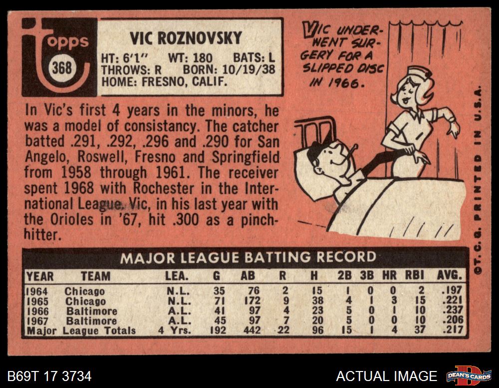 1969 Topps #368 Vic Roznovsky 4 - VG/EX
