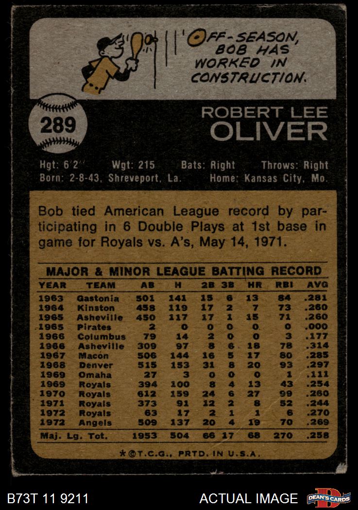1973 Topps #289 Bob Oliver 2.5 - GD+