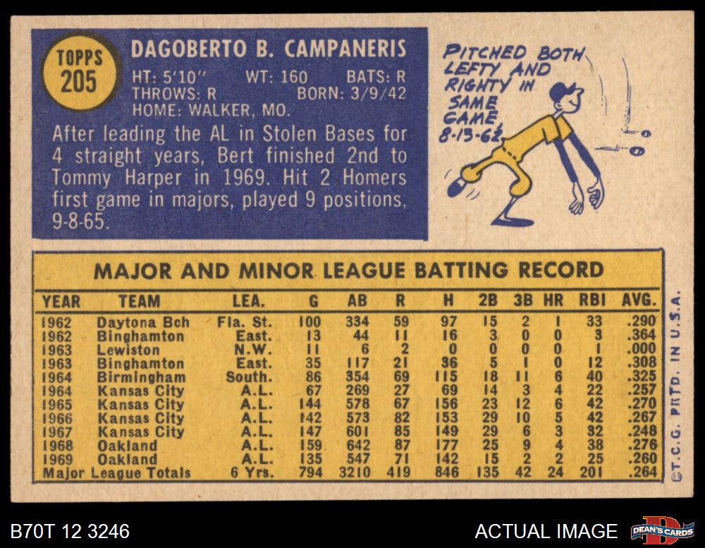1970 Topps #205 Bert Campaneris