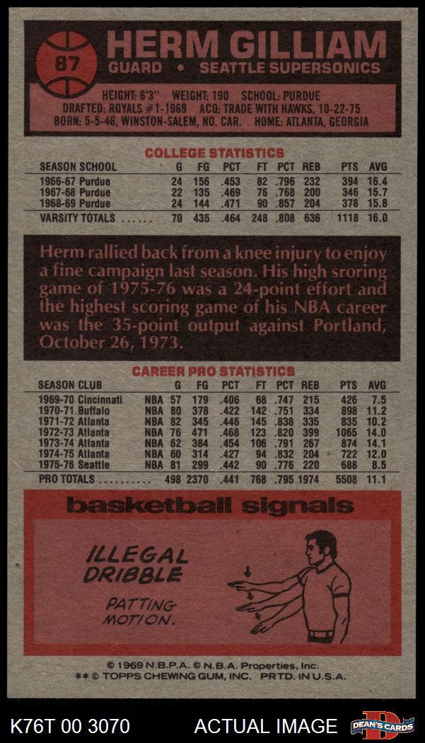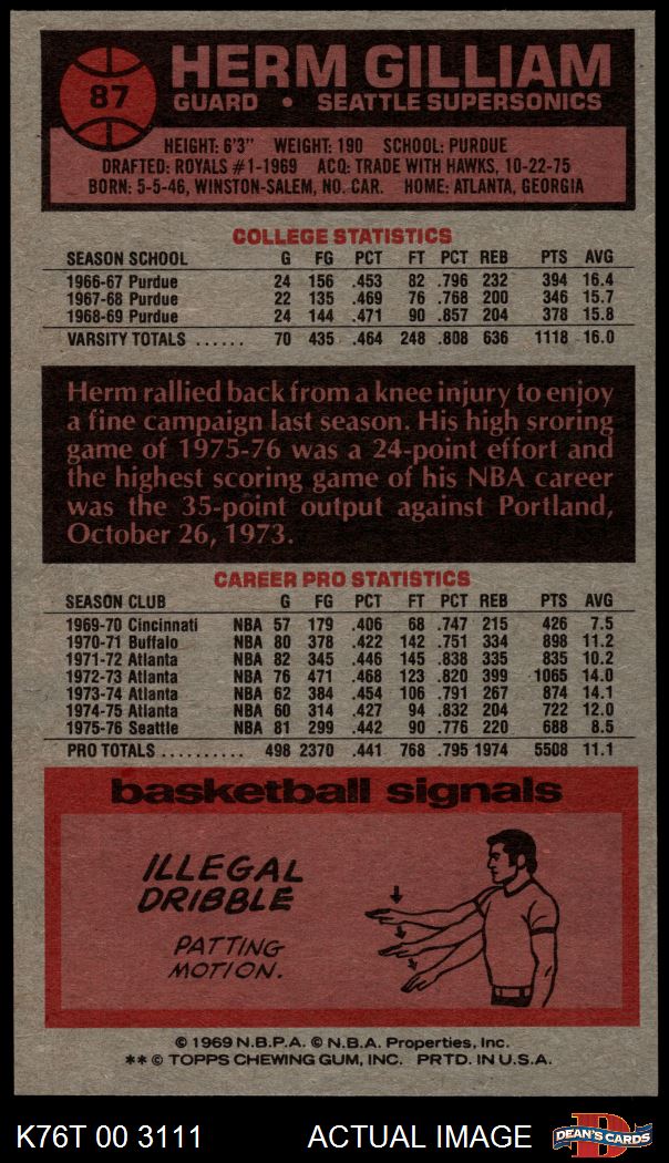 1976 Topps #87 Herm Gilliam 8 - NM/MT