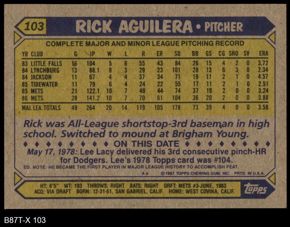 1987 Topps #103 Rick Aguilera